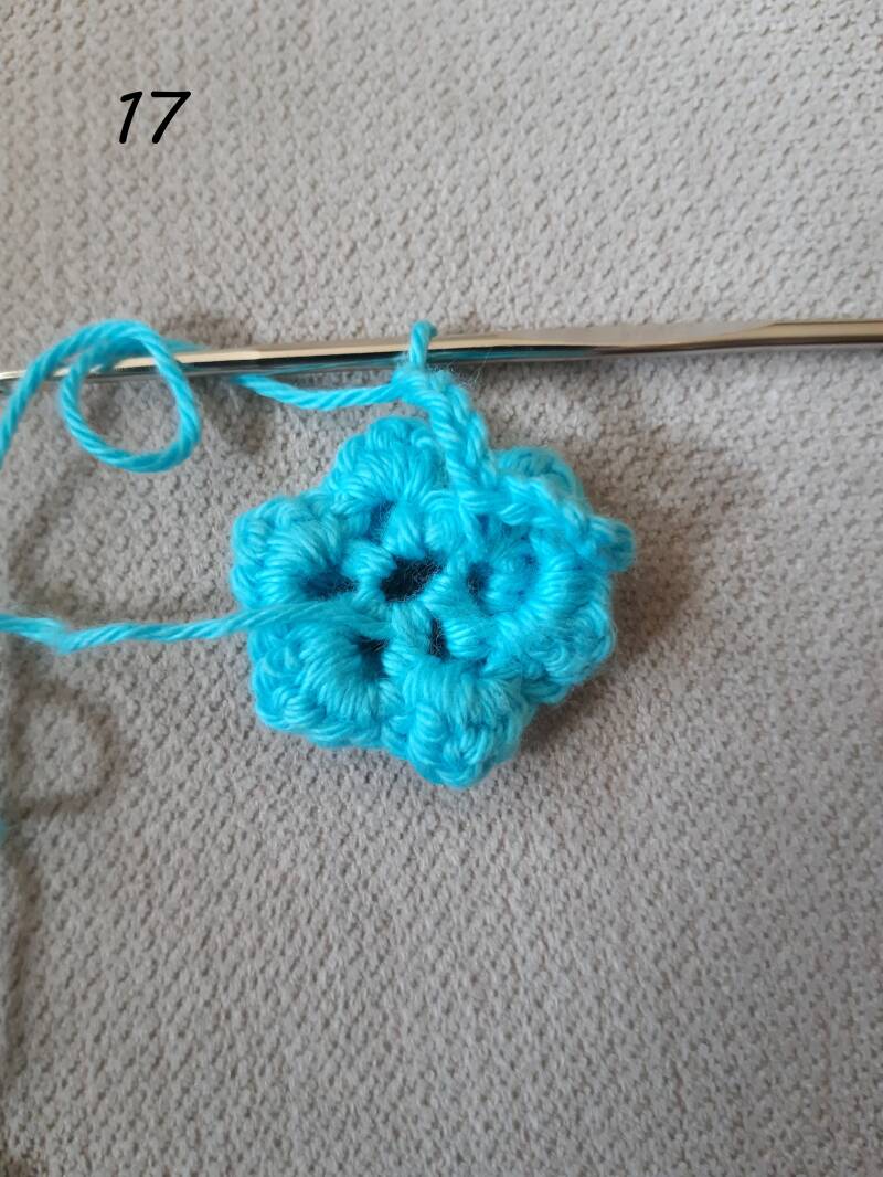*1 stokje-1 losse- 1 stokje -1 losse* tot je 6 boogjes hebt.